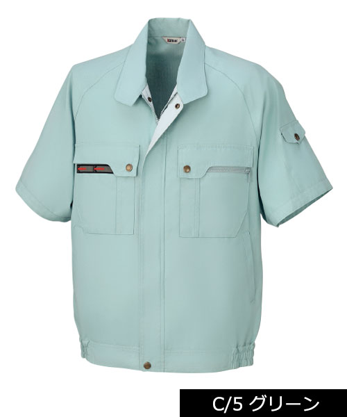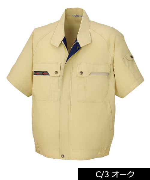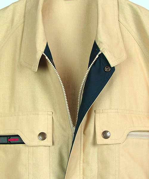 山本寛斎ならではの色彩感覚が遺憾なく発揮された、独自性のあるカラーバリエーションが魅力の「K90202」シリーズの夏バージョン。素材は、最内層が安定性のあるポリエステル、中間層がUVカット昨日のあるクラサーモ、外側が綿でカバーしている3層構造からなる業界屈指のハイテク糸を縦横ぎっしり織り込みました。紫外線を跳ね返すことにより、衣服内温度を外気より3℃涼しく保ちます。ワークウェアである基本的な機能を押さえた、寛斎ブランドでも人気のシリーズです。〔クラレ 日本製素材使用〕