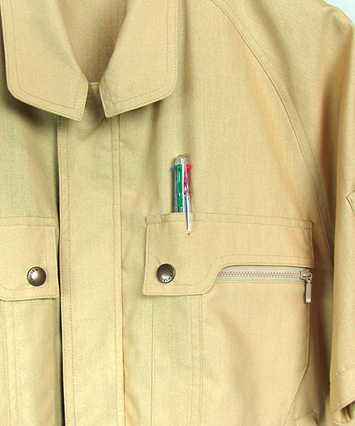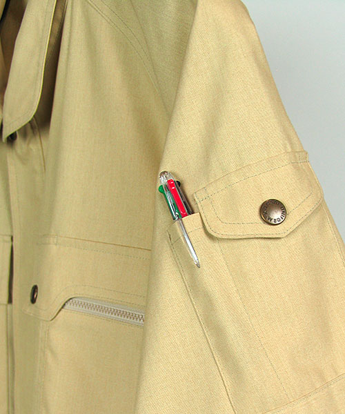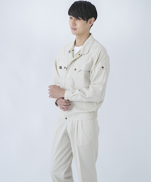 山本寛斎ならではの色彩感覚が遺憾なく発揮された、独自性のあるカラーバリエーションが魅力の「K90202」シリーズの夏バージョン。素材は、最内層が安定性のあるポリエステル、中間層がUVカット昨日のあるクラサーモ、外側が綿でカバーしている3層構造からなる業界屈指のハイテク糸を縦横ぎっしり織り込みました。紫外線を跳ね返すことにより、衣服内温度を外気より3℃涼しく保ちます。ワークウェアである基本的な機能を押さえた、寛斎ブランドでも人気のシリーズです。〔クラレ 日本製素材使用〕