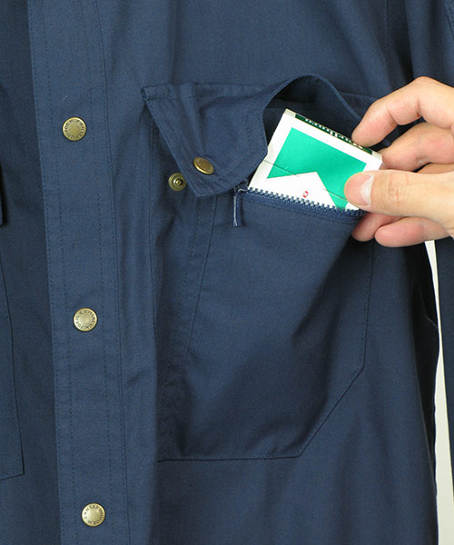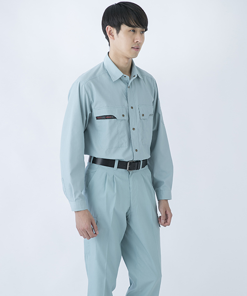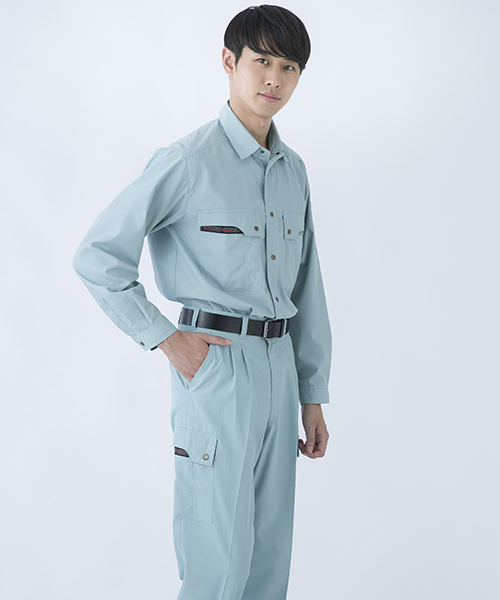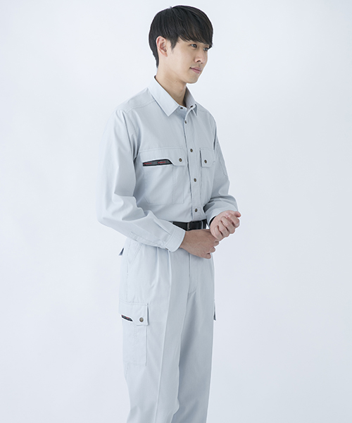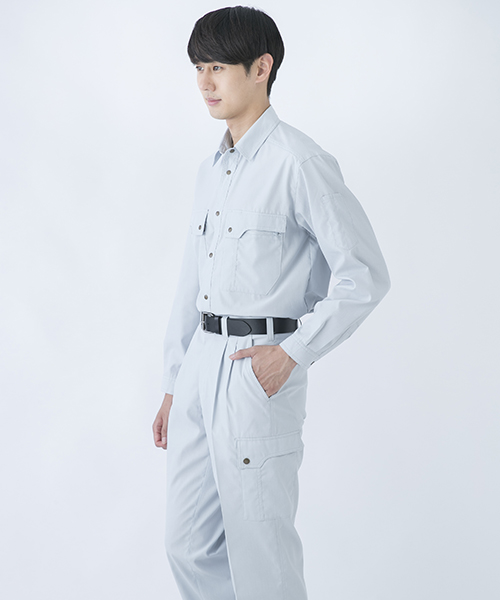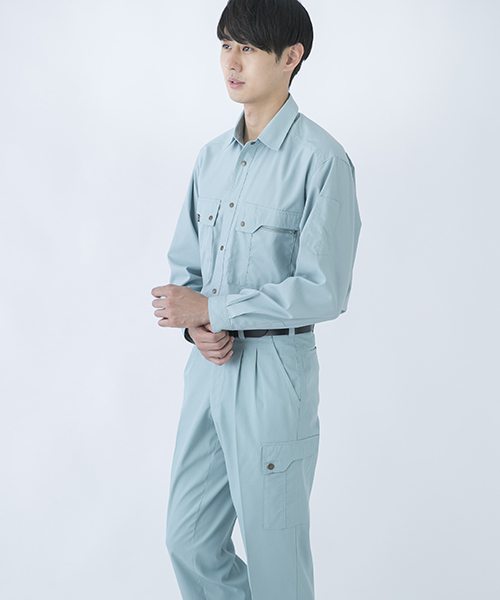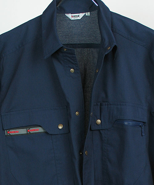 山本寛斎ならではの色彩感覚が遺憾なく発揮された、独自性のあるカラーバリエーションが魅力の「K90202」シリーズの夏バージョン。素材は、最内層が安定性のあるポリエステル、中間層がUVカット昨日のあるクラサーモ、外側が綿でカバーしている3層構造からなる業界屈指のハイテク糸を縦横ぎっしり織り込みました。紫外線を跳ね返すことにより、衣服内温度を外気より3℃涼しく保ちます。ワークウェアである基本的な機能を押さえた、寛斎ブランドでも人気のシリーズです。〔クラレ 日本製素材使用〕