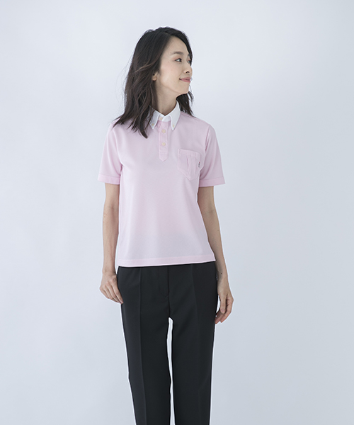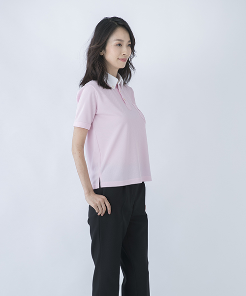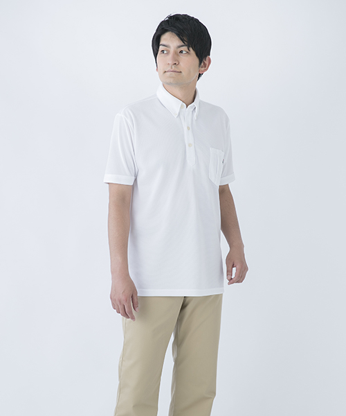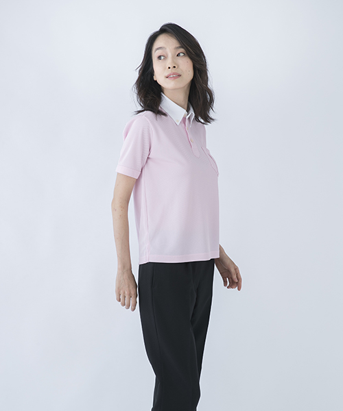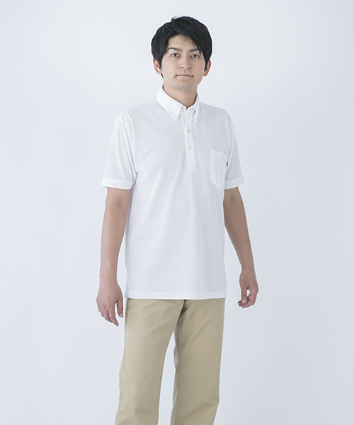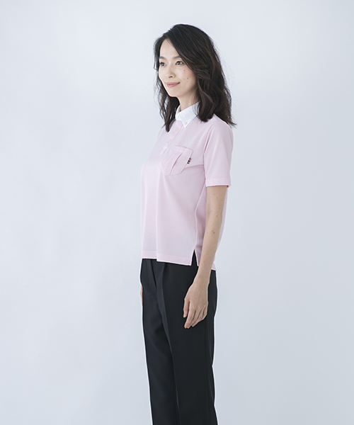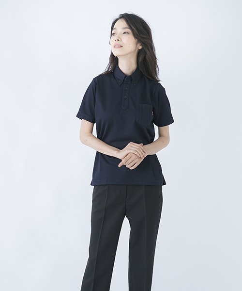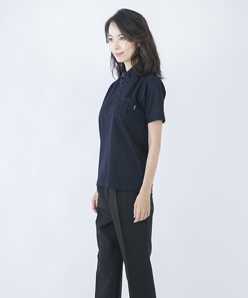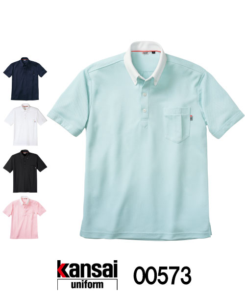 カンサイ刻印ボタン見た目も着ごこちも軽快でさわやか!カジュアルの中にも高級感を漂わせるデザインで作業服としての活用も出来るすぐれもの。 暑い季節は動きやすさや涼しさの他にも着替えやすさなどからシャツは大変便利です。 半袖ポロシャツKS-573・長袖ポロシャツKS-574は、ともに衣服内の通気のよい鹿の子編み素材で暑い日やハードな動きでも汗が乾きやすいドライ仕様。 素材には深みのある光沢と高級感あふれるソフトな風合いで、毎日の洗濯でも型崩れしないイージーケア性抜群の上質素材を使用しています。 営業・配送、軽作業の作業着として、イベントやスポーツ時にもこれ一着で対応可能。 シンプルな見た目の中にも世界的ファッションデザイナー山本寛斎のさり気ないセンスが光る一品。 こちらは男女ペア企画仕様でSS、Sサイズは体のラインを特にきれいに見せるレディース仕様のシルエットになっています。 アームホール、袖丈、前開きなど女性の体にフィットするデザインになっていますので 、職場内で、チーム内で、ペアで合わせることが出来ます。 上品な風格と自然体の着心地で高感度アップの優等生ポロシャツ!