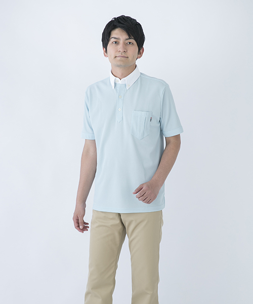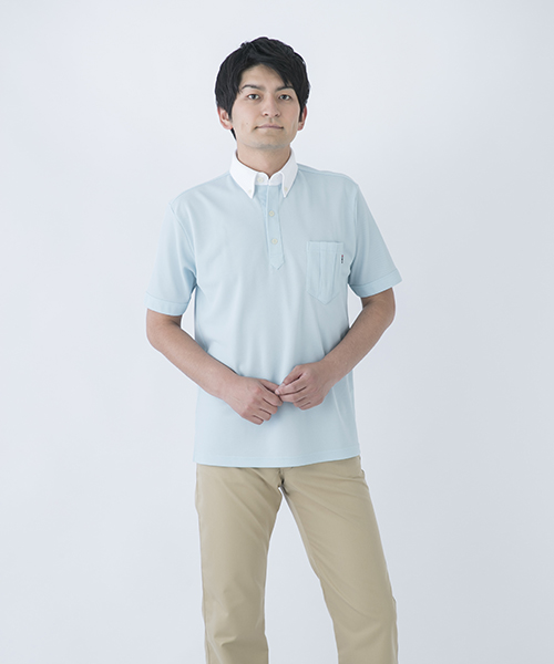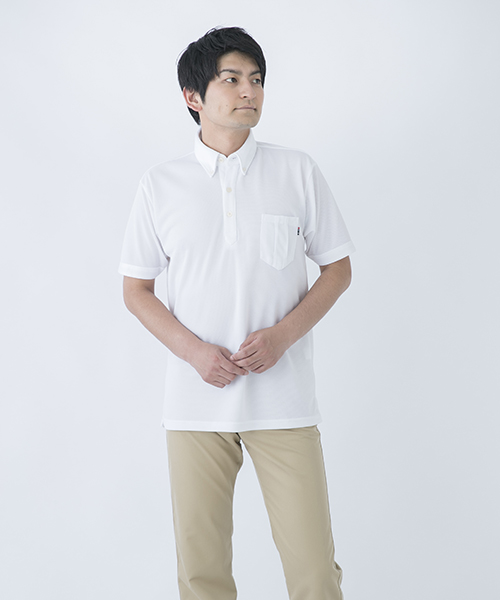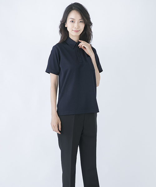 デザインのベースとなっているのは仕立てのよさを追求した紳士シャツで、多目的にご使用いただけるボタンダウンシャツです。贅沢にざっくりと鹿の子縮みした生地は、優しい光沢感があり、風合いや肌触りにも高級感があります。ポリエステル100%なので、ハードに洗濯しても色落ちや毛羽立ちが目立たず、接客業で大切な「見た目」に十分配慮した商品です。また、SS/Sサイズは肩幅・アームホールなど女性の体系に合わせた別パターンを使用しているため、女性の方もジャストフィットで着られます。ノーネクタイでもあらゆるビジネスシーンで、お洒落を楽しめるおすすめシャツです。