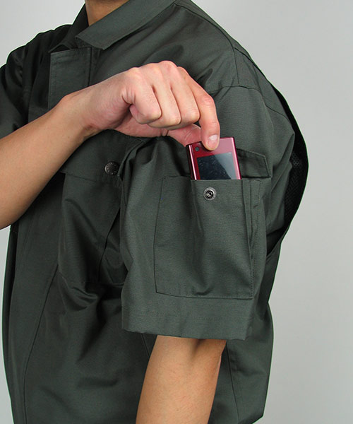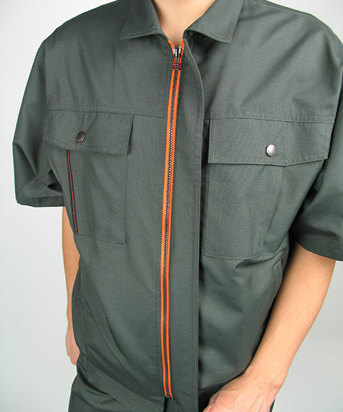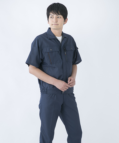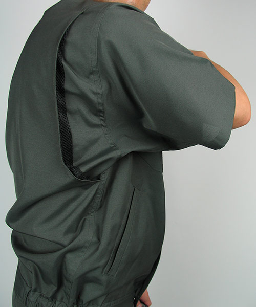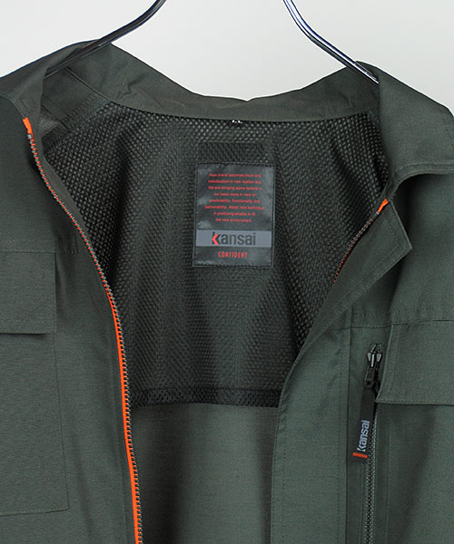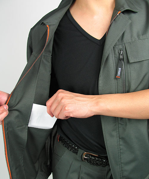 長く愛用される作業服。このキーワードにファッションデザイナーならではの感性でアプローチを見せる人気の寛斎シリーズの一品。 年齢性別、職業を問わずに着用できるそのデザインは一見普通のシンプルな作業着に見えますがかなりエッジが効いて個性的。 まずカラーバリエーションは、青系・緑系・グレー系と作業服の定番カラーをなぞりながらも他には見かけない絶妙な色であり、明るさや聡明さを感じさせます。 ポケット部などのステッチはワンポイントのアクセントになっていて作業着にありがちな地味さ、単調さを明るく活発なイメージに変えています。 これらの個性あふれる要素が盛り込まれながらも年齢性別問わずに誰が着ても違和感のないところがフシギ。まさに作業服デザインの極致といえるでしょう。 動きやすい背脇のノーフォークはメッシュ仕様で涼しさにも貢献。 袖下から脇にかけてはダブルステッチとなっていて丈夫さにももちろん配慮が。 企業イメージや職場内のモチベーションアップまで期待できるオールインワン作業服です。