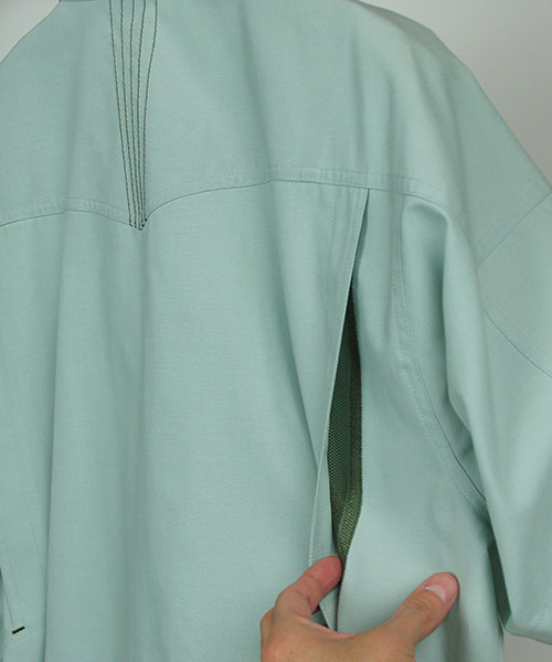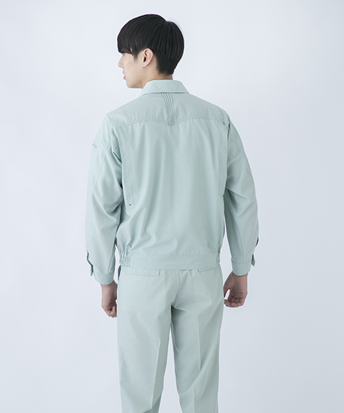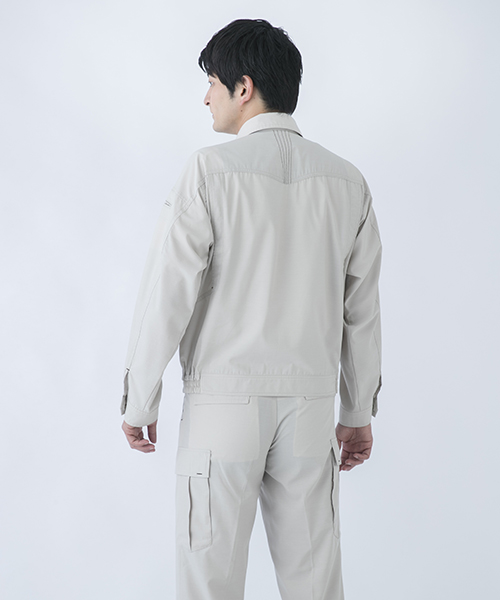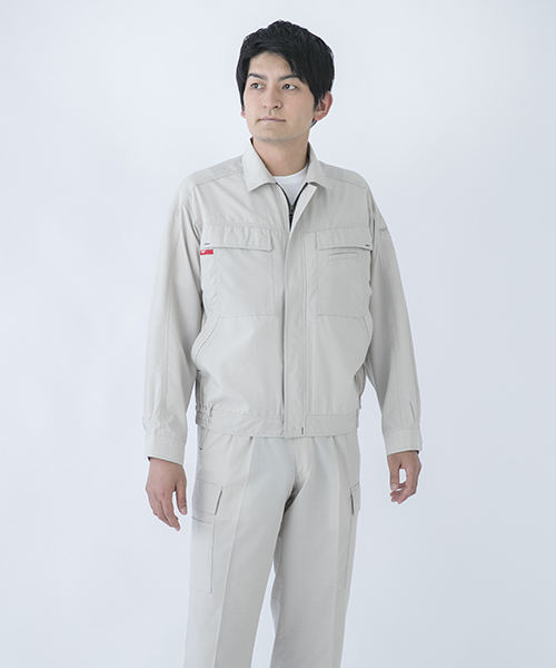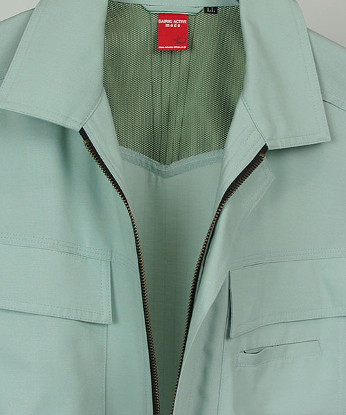 長い作業服メーカーとしてのキャリアの中で、 DAIRIKIにはブランドの中心となる人気・定番アイテムが複数もあります。 そんなヒット商品は、時代・世代、業種を問わずご好評頂いています。 作業服で人気の秘密といいましても、驚くようなスーパー機能があるわけではありません。 いろいろな作業に従事されている方に喜んでいただけるような、ちょっとした工夫です。 作業着のデザインは、一般的な服飾デザインとは違い機能的な部分が優先です。 作業がしやすい、仕事に意気込みの入るユニフォームとは何かを考えて作りました。 作業といえばまず、腕の動かしやすさ。 丈夫な素材でも腕周りの可動を軽やかにする「ハイメカR」を採用しています。 脇のつっぱりも裁断設計で解消しています。 袖付け方向はより平面から人体構造に近い20度前方に傾斜させた立体的な裁断になっています。 この動かしやすさはぜひ体感してみてください。 また、作業時に扱う商品にキズをつけないようにとの配慮から金属ボタンを内側に隠し、表面に突起物のない仕様にもなっています。 機能面だけではなく作業着でありながら見た目にも工夫を施しました。 重い印象を与えないようなシャリ感のあるトロピカル素材の使用と、アクセントとして別色にしたステッチがワンポイントになっています。