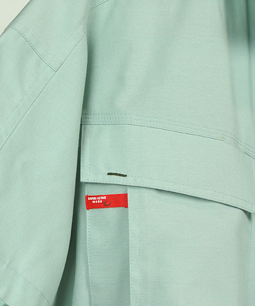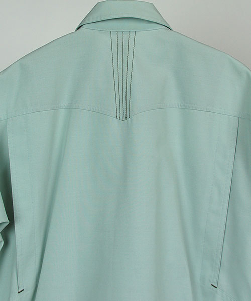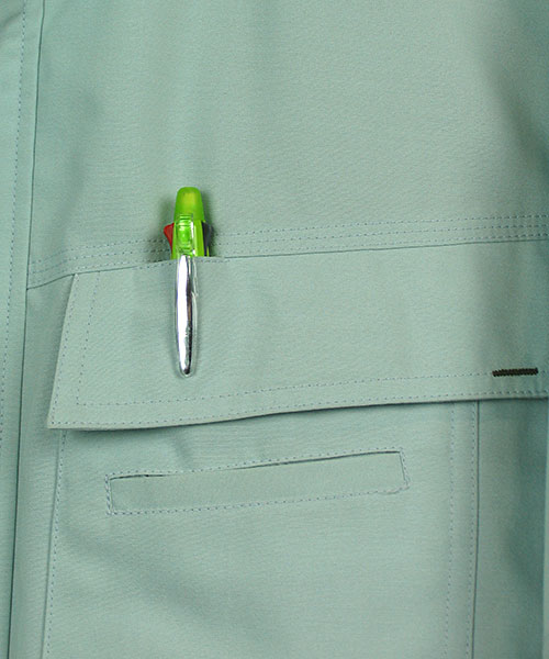 運んでいる商品を傷つけないよう、金属ボタンを袖口・前立て下に隠した隠しボタンを採用。素材は、シャリ感のあるトロピカルを使用し、清涼感あふれる着心地を実現。随所に施された別色ステッチやデザインアクセントが単色の服を知的に演出し、発売以来、変わらぬヒットを続ける人気の商品です。すべての業種や年齢層にご支持をいただける商品に仕上がっています。 〔東レ 素材使用」〕