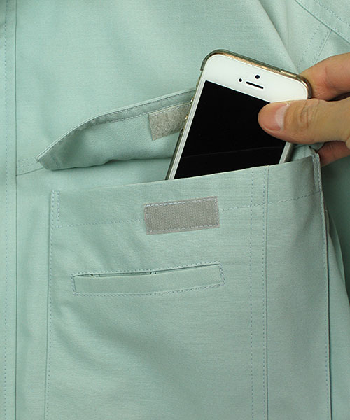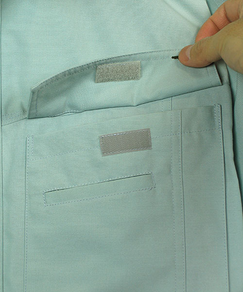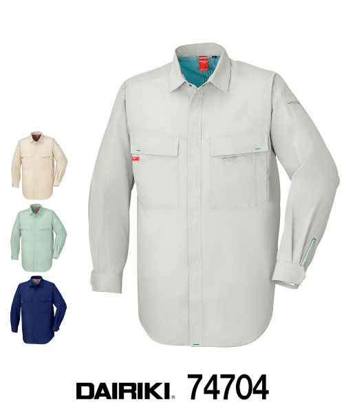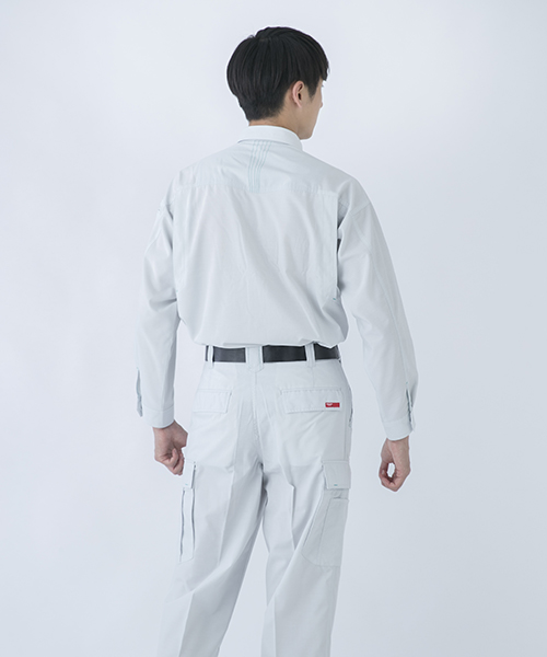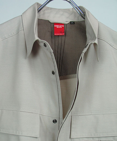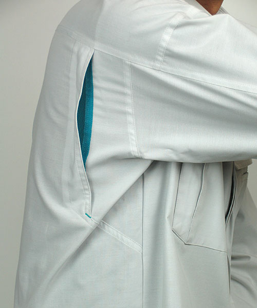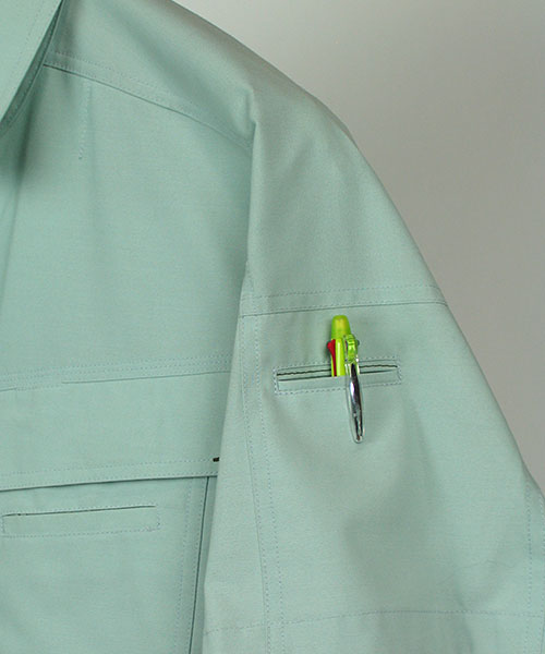 長い作業服メーカーとしてのキャリアの中で、 DAIRIKIにはブランドの中心となる人気・定番アイテムが複数もあります。 そんなヒット商品は、時代・世代、業種を問わずご好評頂いています。 作業服で人気の秘密といいましても、驚くようなスーパー機能があるわけではありません。 いろいろな作業に従事されている方に喜んでいただけるような、ちょっとした工夫です。 作業着のデザインは、一般的な服飾デザインとは違い機能的な部分が優先です。 作業がしやすい、仕事に意気込みの入るユニフォームとは何かを考えて作りました。 作業といえばまず、腕の動かしやすさ。 丈夫な素材でも腕周りの可動を軽やかにする「ハイメカR」を採用しています。 脇のつっぱりも裁断設計で解消しています。 袖付け方向はより平面から人体構造に近い20度前方に傾斜させた立体的な裁断になっています。 この動かしやすさはぜひ体感してみてください。 また、作業時に扱う商品にキズをつけないようにとの配慮から金属ボタンを内側に隠し、表面に突起物のない仕様にもなっています。 機能面だけではなく作業着でありながら見た目にも工夫を施しました。 重い印象を与えないようなシャリ感のあるトロピカル素材の使用と、アクセントとして別色にしたステッチがワンポイントになっています。