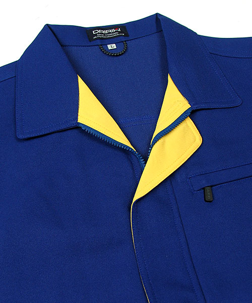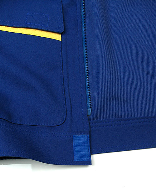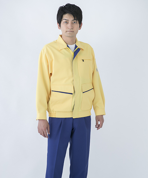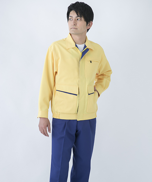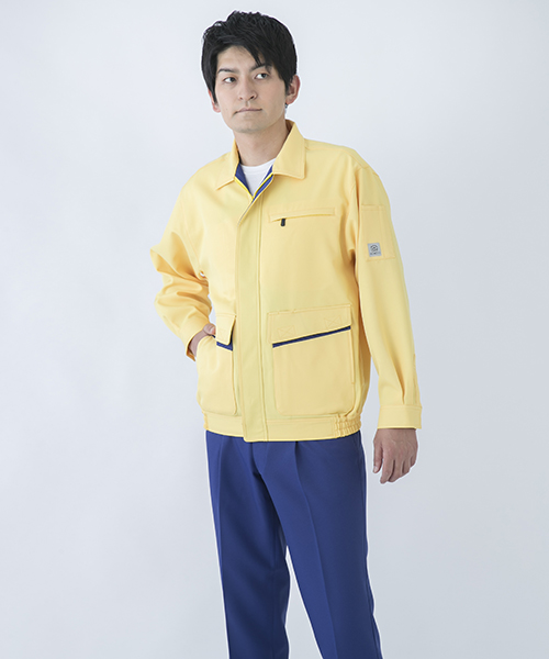 バックヤードでの活躍を助ける明るく頼もしいパートナー77002は 着ている本人だけでなく周りのスタッフ、お客様にもハキハキとした印象を与える接客・配送に大活躍のエキスパート作業服です。 サービス業務を円滑にしてくれる作業着。その秘訣は明るいカラーが与えるキャラクターイメージだけではなく、使いやすいポケットや隠しボタンなどの性能面にもあります。 ペットボトルも入るほどの大きさのポケットは出し入れがしやすい脇腹をメインにしており、 物を沢山収納しても動く上で身体のバランスが崩れません。 伝票などで必要な筆記用具は腹と袖に専用ポケットがあり、探す手間がなくとっさの出し入れもラクチン。 ポケット下はワンポイントの別色配色でシャープでスピーディーなイメージを演出。雨天に役立つポケットのフタはマジックテープ仕様になっているので実際に作業もスピーディーに。 丈夫さに必要な金属ボタンは表面に出てこないように配置することで、作業中うっかり商品にキズを付けません。 肌の触れるインナーは綿素材を使用しているのでシャープな外観とはうらはらに着心地はマイルド。 作業時に目立つように個性的でありながらも上着とズボンを別色にも合わせられる絶妙なカラーリングでお仕着せにならず、豊富なバリエーションパターンを可能にしました。 「作業着=労働ユニフォーム」というイメージにとらわれない、着るだけで元気が出るような作業服です。