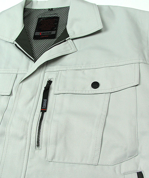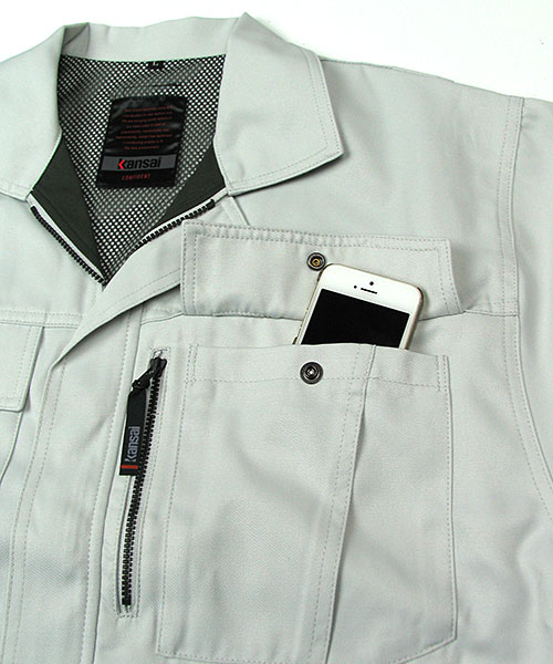 携帯電話専用ポケットユニフォームにも個性が欲しい。もっとオシャレに着こなしたい。 そんな願いから生まれた山本寛斎デザインユニフォーム。 ファッションブランドとして磨き上げた感性を注ぎ込んだ作業服。 Kansaiブランドの作業着はどれを採用しても驚きの仕上がり。 なぜならそこには大きく相反する2つの要素が自然な形で混在するからです。 それはおしゃれなデザイン・新しいデザイン・個性的なデザインなど、とがっていながらも作業着として違和感のないデザインであるところ。 もちろん何年経ってもカッコイイところも。 それは作業服にありがちなブルー系・グリーン系・グレー系でありながらも、なぜか地味に感じない絶妙な色の選択などの細かいところから構築されているのかもしれません。 世界で活躍するデザイナーの巧みの技が宿る作業着とも言えるでしょう。