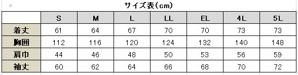 ※EL・4Lは¥300+税、5Lは¥1,000+税高となります。