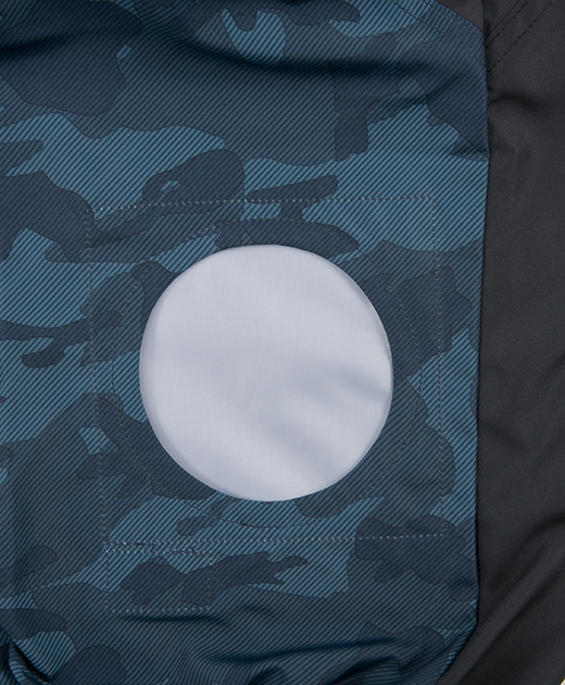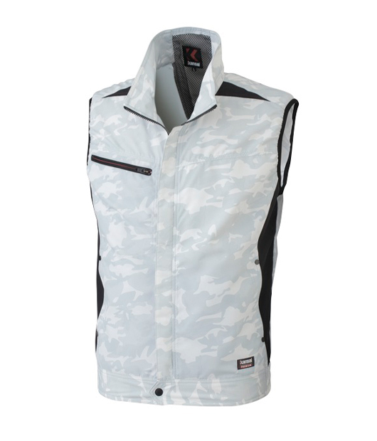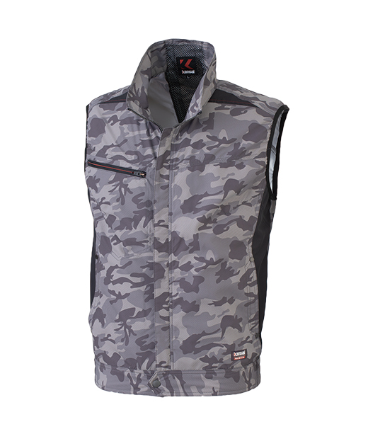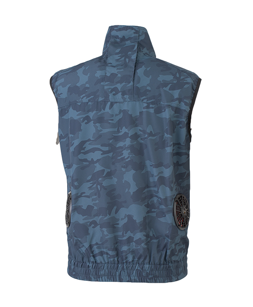 カモフラグループのシリーズ完結編 ベストがカッコよく美しいシルエットになるよう、ベスト専用の仕様にしています。ただ単に袖が無くなっただけではありません。このモデルより首の後部に風を強く通すように風気路を採用しました。UVカットを標準装備することにより疲労を軽減するだけでなく紫外線から服を守ってくれます。