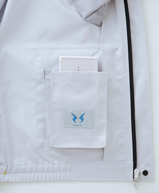 両胸ファスナーポケット(ケーブルホール付き)
