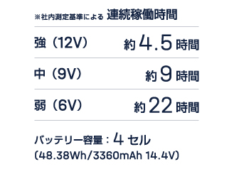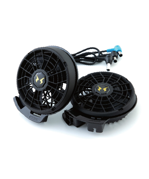 12V仕様となります。 ファンがウェアの中に収まり、飛び出さないので作業中にファンが支えるなどせず快適に使えます。