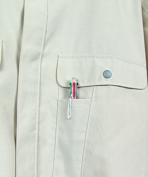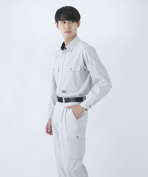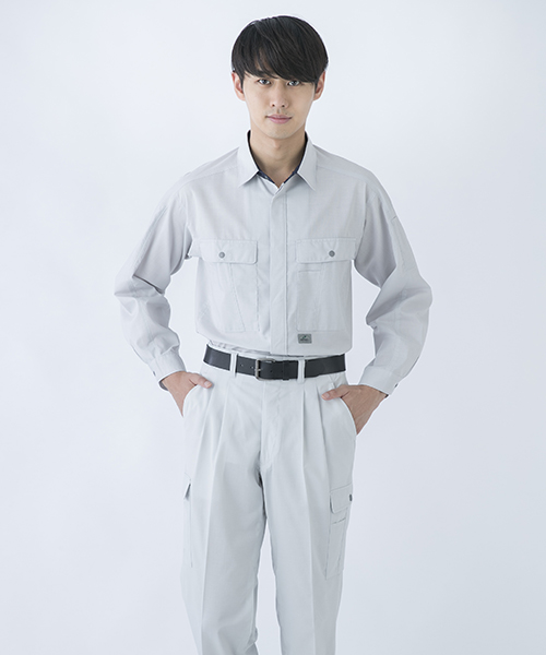 人体工学に基づいたともいえる立体裁断。 ぱっと思いつくアイデアだとしても、それを実現するには卓越した技術力が求められます。 3D縫製とは本来、動きやすさが最も求められる現場作業などの作業服にあってこそ、その真価が発揮されるものです。 717はそんな時代のニーズに先駆けて開発された立体裁断による作業着のパイオニア、作業着ブルゾン737の春夏バージョンです。 腕周りのつっぱりを解消するハイメカカットのフィット感。 ドライタッチのトロピカル素材プラス立体裁断により、衣服と肌の間を風が通過しやすくなる事も上乗せされ、暑い季節の動きやすさは驚きものです。