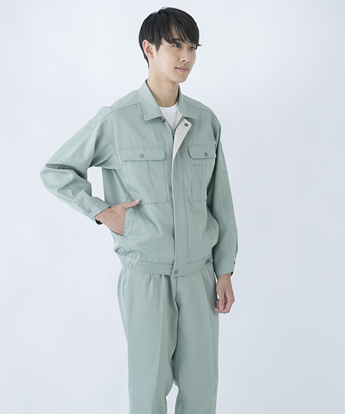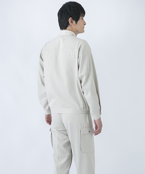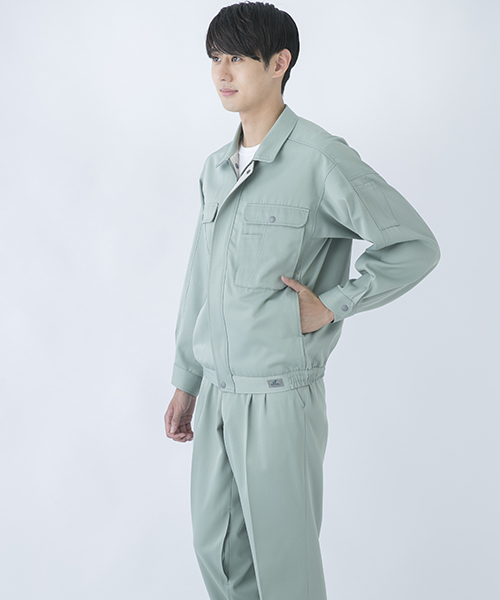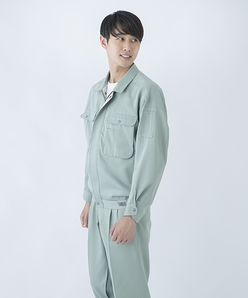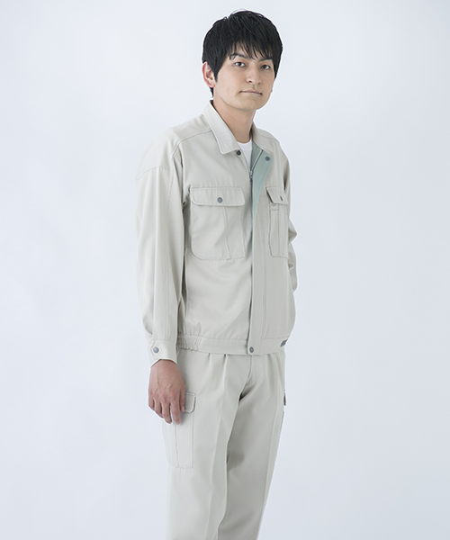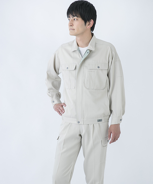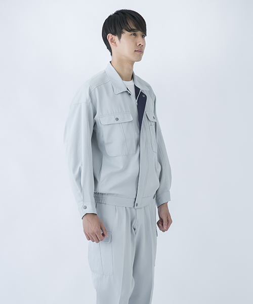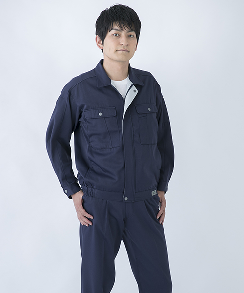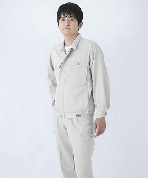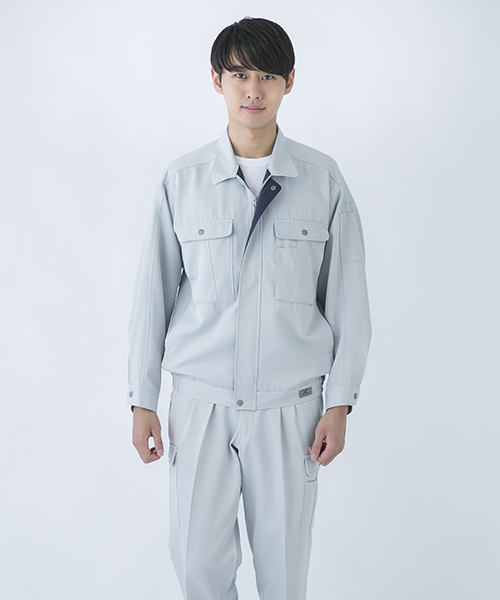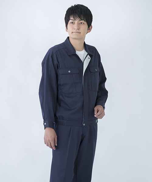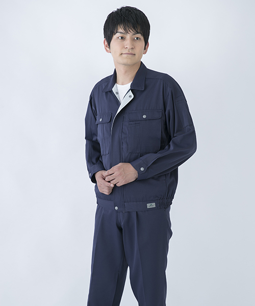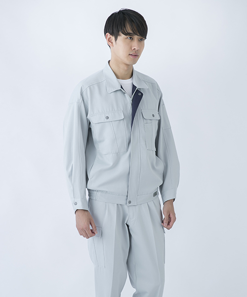 背中のタックが動きやすさを追求する唯一の手法だった時代に、早くから立体裁断を採用し、フラットでありながら動きにマッチした自然なゆとりと、すっきりとしたシルエットで動きやすさを実現した先駆的商品です。ブルゾン・スラックスを同色で合わせる通常のコーディネイトだけではなく、グレーのブルゾンにネイビーのスラックスを合わせても絵になる、酒脱なデザインも大きな魅力。ネーミングの『737』は、ボーイング社が製造するベストセラー旅客機「Boeing737」に由来し、ワークウェアのNO.1ブランドを目指して名付けられました。 〔東レ 日本製素材使用〕
