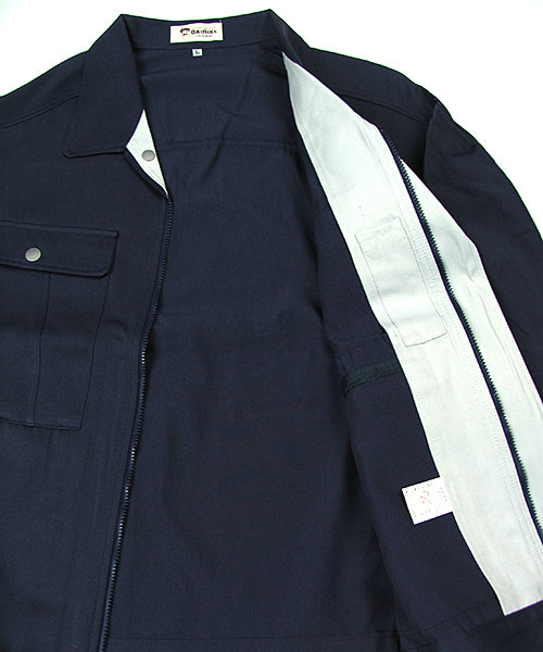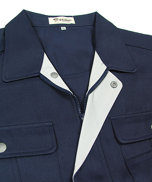 静電気帯電防止DAIRIKI自慢のロングヒット作業服のひとつに上げられる737。 ネーミングを旅客機からとったというエピソードだけではなく、商品の登場そのものが革新的でした。 他に先駆けて取り入れた立体裁断は今でこそ当たり前のようですが、高度な製縫技術が求められる事もあり発表当時では画期的なもの。 いわゆる3D縫製は作業服でなくとも一般に普及し認知されるようになったのはここ最近のことですから驚きです。 人間の身体にフィットする、より自然体に近い形に仕上げる袖付け「ハイメカカット」が腕・肩の可動をスムーズにし、作業効率アップに貢献します。 汚れるものだし作業着はとにかく安い物を着つぶして使い捨て。という認識が多い中に一石を投じた737もお陰さまで好評頂き、定番作業服としてラインナップされ続けています。