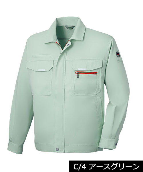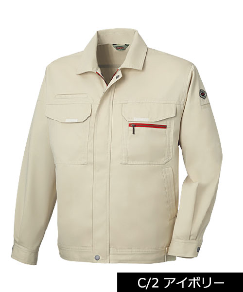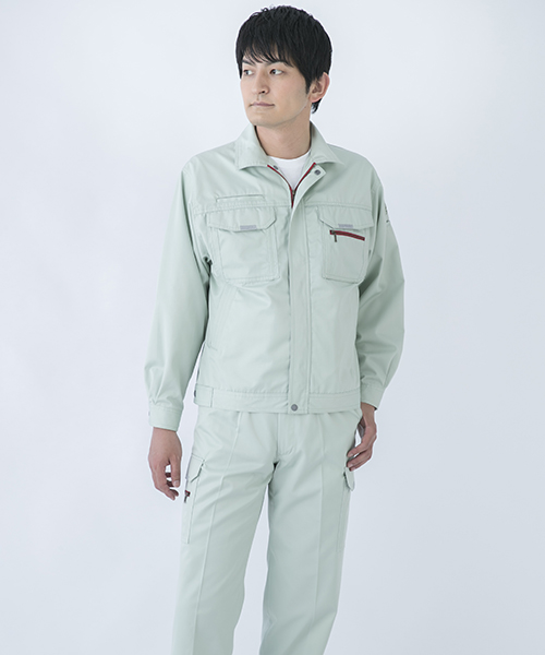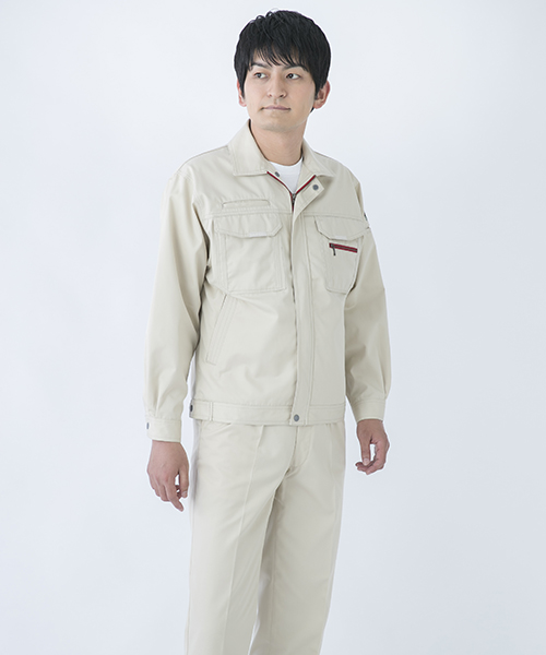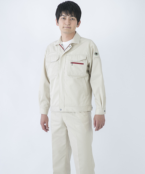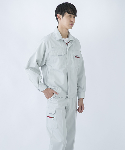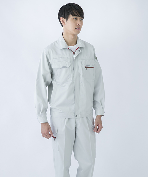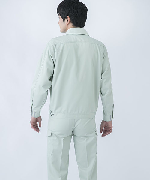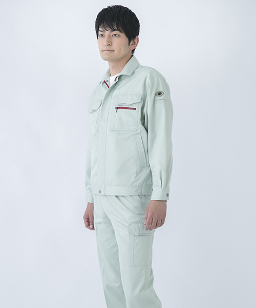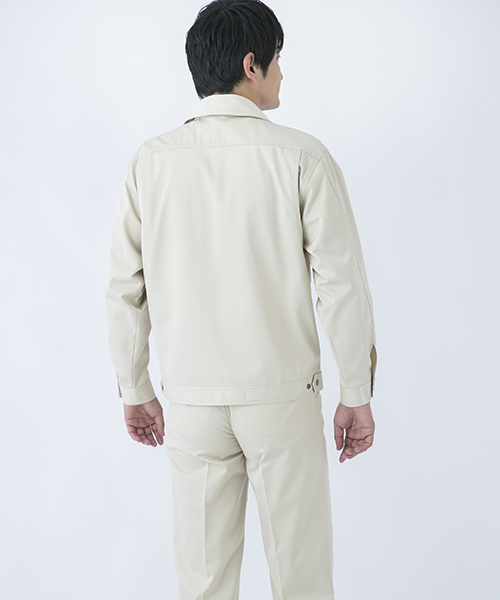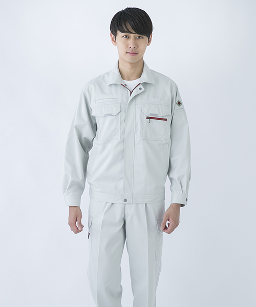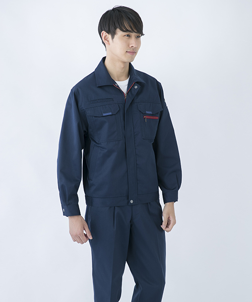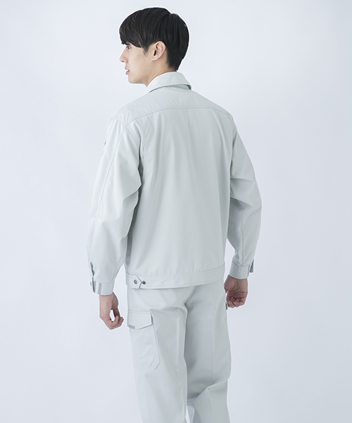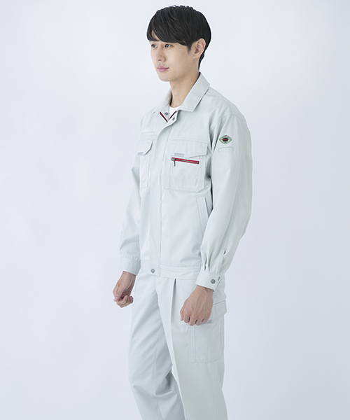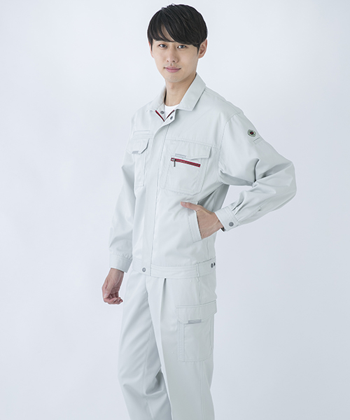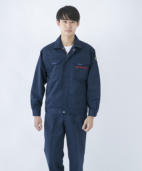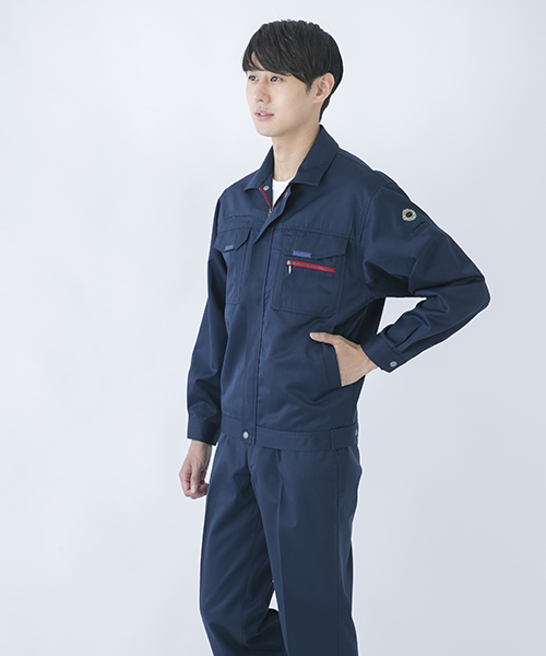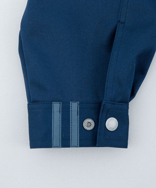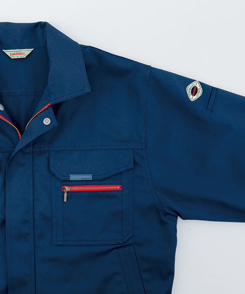 ダイリキ作業服の多くは、クラシックモダンをテーマに作られています。この商品はそのテーマに乗りつつも、上品でワイルドという相反する二面性をもつ商品に仕上がっています。もしもジェームス・ボンドが作業服を着るならこの商品が最も似合うことでしょう。胸と袖口にほどこしたシークレット反射テープは、普段は服と同色のため、反射材とは分からないでしょうが、夜の暗闇では力を発揮してくれます。すべての人から愛されるカッコいい作業服。ダイリキカタログの定番商品の中でキングになってほしいと願いを込めて「定王」という名前を付けています。
