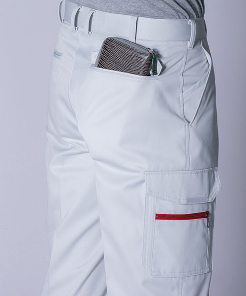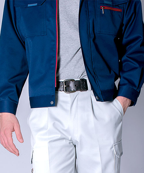 ダイリキ作業服の多くは、クラシックモダンをテーマに作られています。この商品はそのテーマに乗りつつも、上品でワイルドという相反する二面性をもつ商品に仕上がっています。もしもジェームス・ボンドが作業服を着るならこの商品が最も似合うことでしょう。胸と袖口にほどこしたシークレット反射テープは、普段は服と同色のため、反射材とは分からないでしょうが、夜の暗闇では力を発揮してくれます。すべての人から愛されるカッコいい作業服。ダイリキカタログの定番商品の中でキングになってほしいと願いを込めて「定王」という名前を付けています。