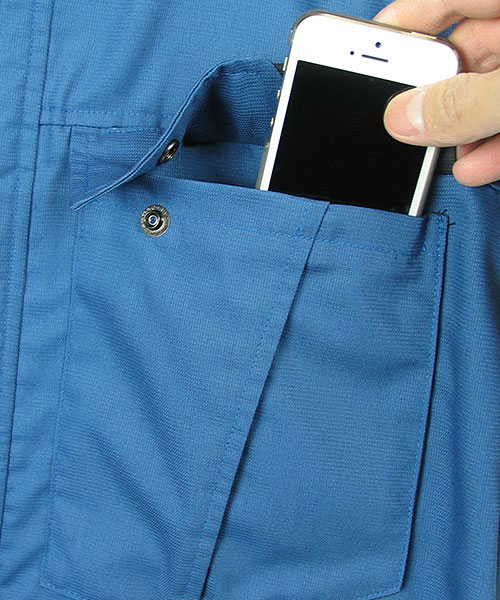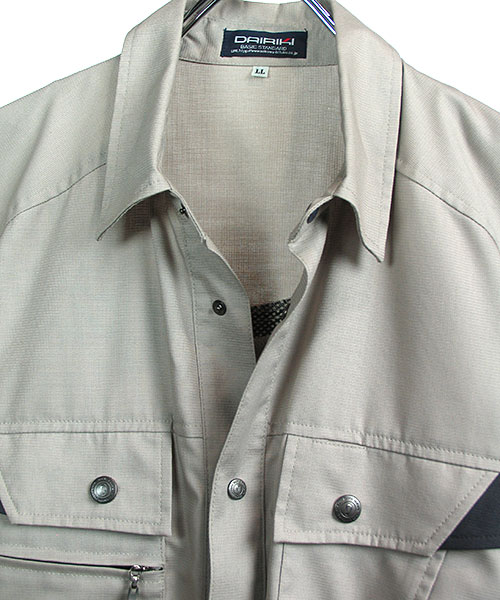 数多いDAIRIKIの作業服の中でもナンバーワンを目指す、とのコンセプトで開発されたD1シリーズに 待望の春夏バージョンが完成しました。 春夏用の工夫として、動きやすいラグラン袖を風通しの良いメッシュでつなぎ合わせてあります。 このメッシュは伸縮素材でできているので作業着のキモである「動きやすさ」が向上しています。 機能面だけではなく見た目もかっこいい作業服でなくてはNo1とはいえません。 袖のメッシュもアクセントとなるようにほんの少し出して縫製していますが、 こちらは高い縫製技術の賜物でありDAIRIKIの高品質の証明でもあります。 ポケット内に携帯電話専用のスペースがあるところも細かいですが便利。 沢山の物を詰め込むことの多い作業員には嬉しい機能です。 丈夫で通気性も抜群な素材、便利な機能に加えて、おしゃれにも気を配った自慢の一品をぜひ体感してみてください。
