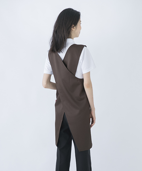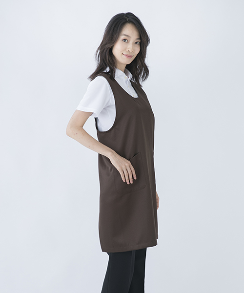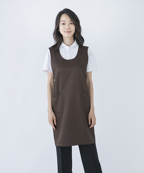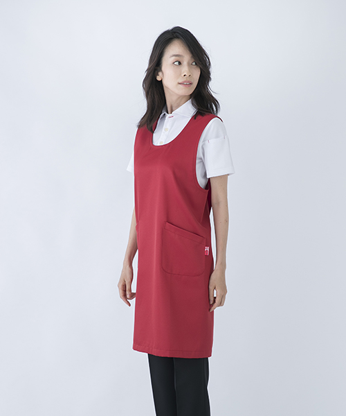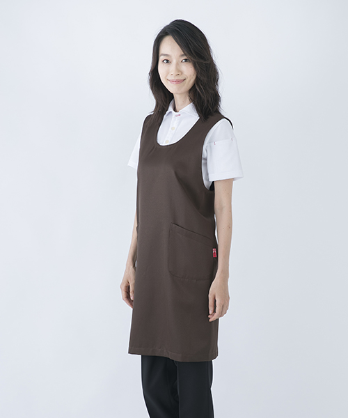 カンサイエプロンは全5色・4デザインの20アイテムからお選びいただけます。シンプルで飽きのこないデザインはどんなウェアにも合い、動きやすさにも優れています。素材には撥水加工が施してあるため、水を垂らすと蓮の葉が水をはじくようにきれいな水玉ができ、汚れにくく、いつもクリーンな着心地をキープします。ぜひお試しください。KS-004ドレスエプロンは身体をすっぽりカバーするドレスタイプ。働く女性の身体のラインをより美しく引き立たせます。飲食店やカフェだけではなく、ネイルサロン、エステサロン、高級ジュエリーショップなど、女性スタッフの接客業にもオススメのドレスエプロンとなっています。山本寛斎(Kansai)エプロン[クラレトレーディング日本製素材使用]